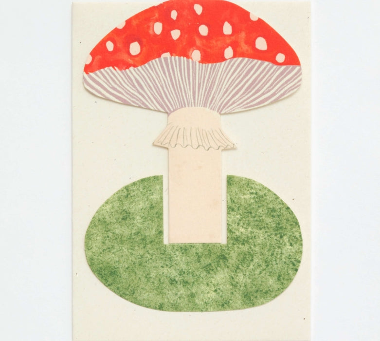 A bright toadstool card designed to bring a little cheer. It folds out to stand freely on its own grassy-style base, making it a thoughtful choice for any fungi enthusiast.